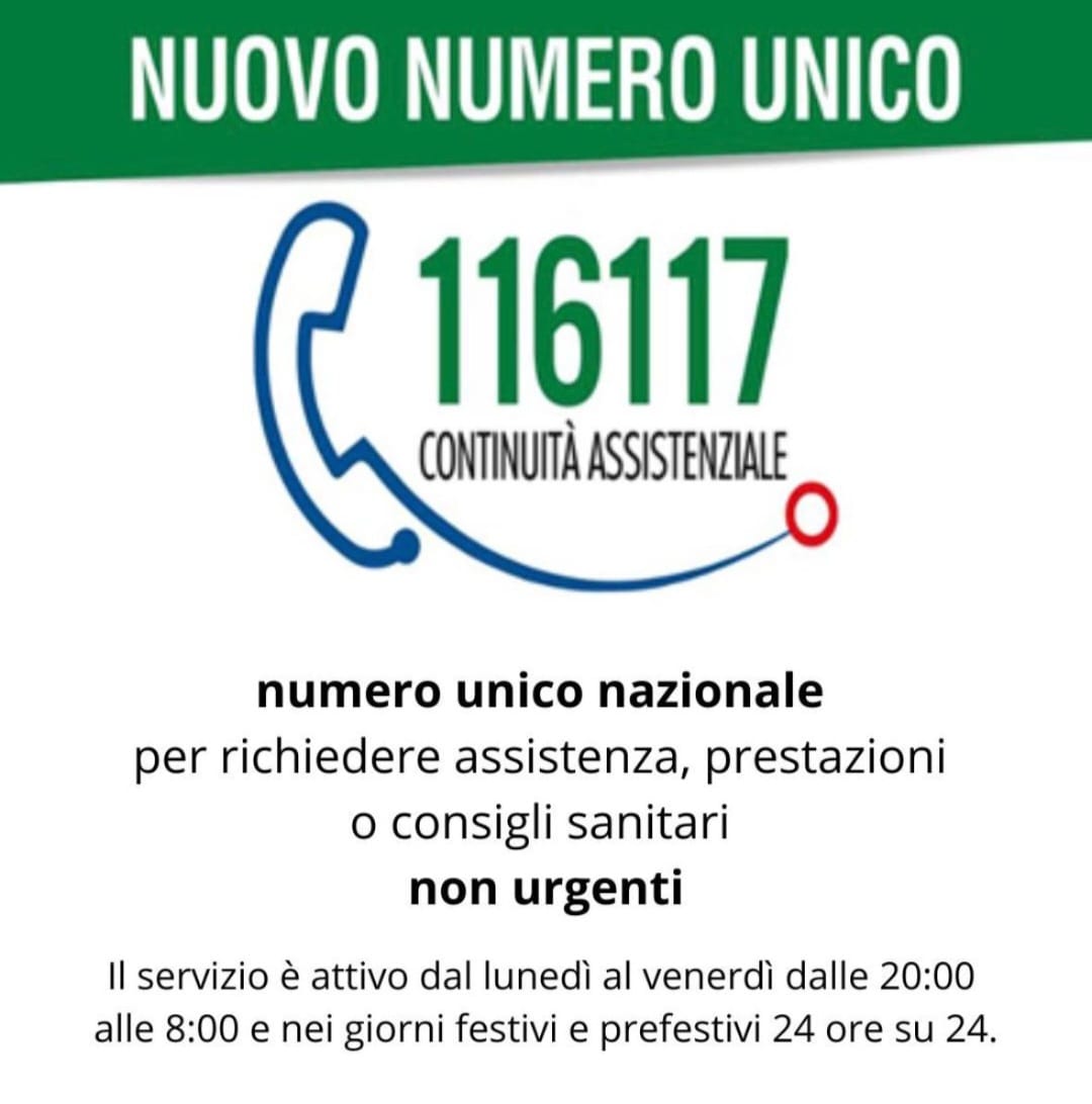 Nuovo numero unico nazionale 116 117 per richiedere assistenza, prestazioni o consigli sanitari non urgenti.