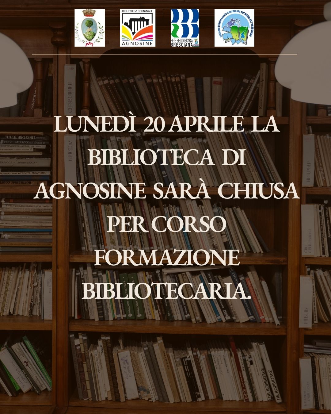 Lunedì 20 aprile 2026 la biblioteca sarà chiusa per corso formazione bibliotecaria